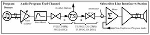 Connection and disconnection of Audio Program Feed Channels to/from Program Timeslots (1) is done dynamically as the program feeds become available (after module or board reset) or unavailable (when an individual board fails or is reset). Connecting and Disconnecting Program Timeslots to the Audio Program SubChannel (2) of the Subscriber Line Interfaces (and thereby Stations (2)) are always done dynamically, caused by manual (de)activation, automatic (de)activation or temporary masking when the station is busy. More than one Station (or no Station at all) may of cause receive program audio from the same Audio Program Timeslot simultaneously. Audio Program Handling involves nothing but Audio Switching. (The Gain Control and the Program Source are adjusted manually).