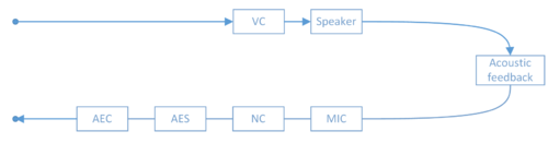 AES can also work together with AEC where AES reduce MIC signal when voice is detected on the speaker signal. | AES can also work together with AEC where AES reduce MIC signal when voice is detected on the speaker signal. | ||