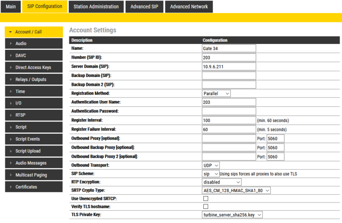 - SRTP Crypto Type [Turbine only]: See SIP security