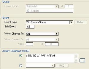 The System Status Event related to device 65 will be triggered when the AlphaCom starts up. Use the following action string: