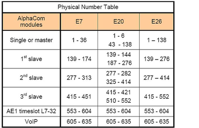 The physical numbers [[AE1_-_AlphaCom_Digital_Network_Board#AlphaPro|553 to 604]] are reserved for timeslots 7 to 32 when [[AE1]] boards are used. | |||