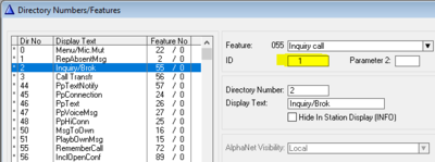 Blind Transfer (feature 55/1) is not included in | Blind Transfer (feature 55/1) is not included in Factory Default. To enable digit "2" for Blind Transfer, modify the parameter 1 as indicated in the screen shot below. | ||