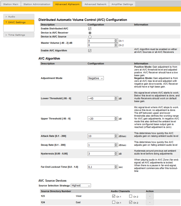 Log in to the web interface of the AVC Receiver, and enable Advanced Configuration. Select Sip Configuration > DAVC. Check the settings Enable DAVC, Device is AVC Receiver and Enable DAVC Algorithm.