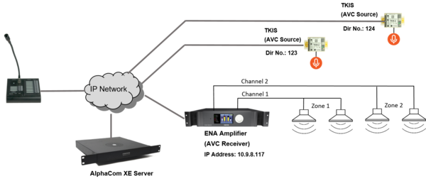 - The AVC Receiver is the output device that is used for playing audio, typically an ENA amplifier, or a PA Interface such as a TKIS-kit or TKIE-kit.