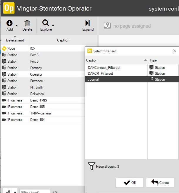 In the VSOP Client, select Filter sets, and Add a filter set for Station, and in the Caption field assign a descriptive name to the filter set, e.g. "Journal".