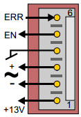 6-pin header for connecting external amplifier. 12V/5W can be supplied to the external amplifier. Signal to amplifier is balanced 0dBm 600 ohm.