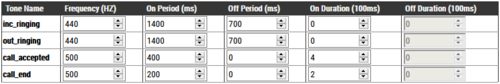 Note: The tones for Call Accept and Call End are not expected to play forever. The tones for Incoming Ringing and Outgoing Ringing is expected to play forever.