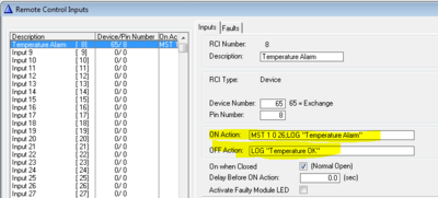[[File:Temp alarm.PNG|thumb|right|400px|Delete ON and OFF action if "Temperature Alarm" should not be reported to station #1]]