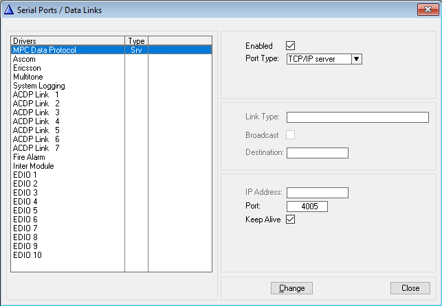 - If serial port is used for the integration, the port type should be set to Hardwired