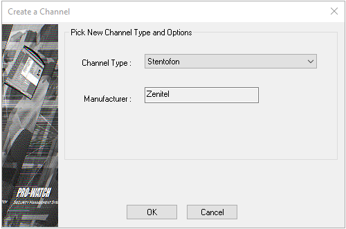 Select the added site in the Hardware Configuration tree view, right-click and select New > Channel. From the dropdown menu set the channel type to Stentofon and click OK to proceed to define the channel.