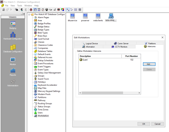 - Remote intercom stations (normally sub-stations) can be associated with logical devices such as doors. A call can then be made via for instance a right-click on the door icon. Intercoms may also be called from the Alarm Monitor, see the Pro-Watch Software Suite User Guide for more details.