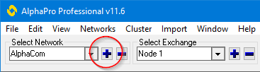 Create a customer database and define the first ICX-AlphaCom node by clicking the + sign as highlighted below.