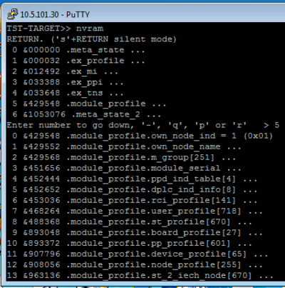 Changes are saved to flash when leaving the NVRAM editor by pressing "q" (quit). Changes will be lost after next reset if not quiting in this way. | |||