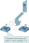 | Description: | Put the current conversation on hold, and call the third station. Or with parameter 1 = 1 does a blind transfer to a third station or feature.