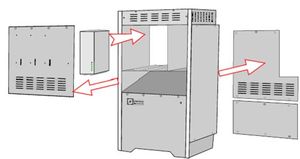 - Plug the female end of the mains cable into the power supply and the other to the mains outlet in the cabinet’s upper compartment