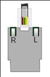 | The station can be powered from this connection if the line supports Power over Ethernet (PoE). The connector has two LEDs in front where the right (R) indicates Ethernet speed and the left (L) verifies Ethernet link and traffic. (L and R seen from the connector side). | |||
