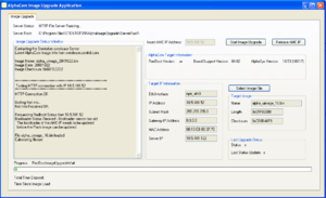 AlphaImageUpgrade is used to install image files with the extension .bin, which iss used on AMC firmware 10. AlphaImageUpgradeXE is used to install image files with the extension .aimg, which is used on AMC firmware 11. This article describes the AlphaImageUpgradeXE tool.