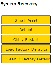 - Clean & Factory Defaults: Reset intercom configuration data. Remove License, SysLog and Backup files. IP settings are kept.