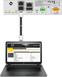 [[File:ICX Web | [[File:ICX Web Laptop.png|thumb|right|200px|Connect the laptop to Eth0, and enter 169.254.1.5 in the web browser]] | ||