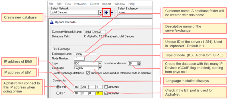 - Press [+] to create a new exchange (or SIP node) in the currently selected network