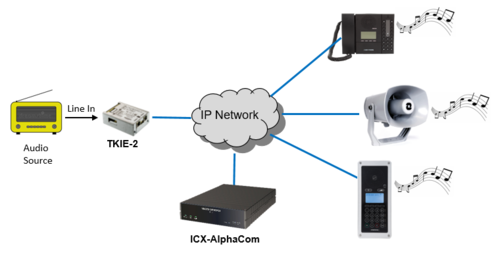 Audio program distribution in the ICX-AlpphaCom is supported via the Line In input of the TKIE-2 kit.