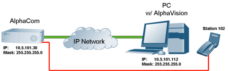 - AlphaVision: Configure communication parameters (AVCMSetup) and select 'Operator station'