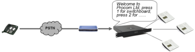 • Example: ”Welcome to Procom Ltd, press 1 for switchboard, press 2 for Sales department, press 3 for Marketing department, or wait for an answer