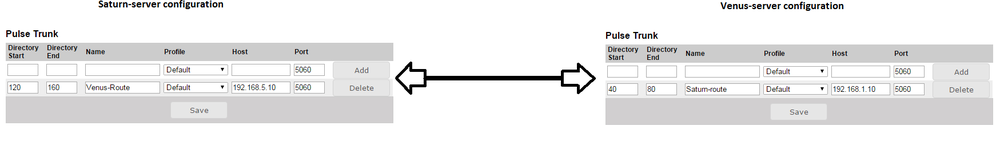 Pulse Trunking makes it possible to call between different Pulse systems. The routing between Pulse systems are easily configured in the Pulse Server Directory.