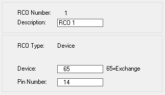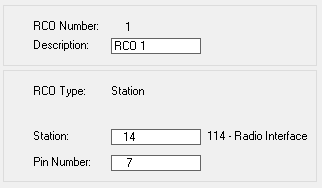 The RCO is configured in the Event Handler. In the Users & Stations window, highlight the interface in the listbox, and select the button Events. Press Insert to create an event with the following parameters (here RCO 1 is used as an example):