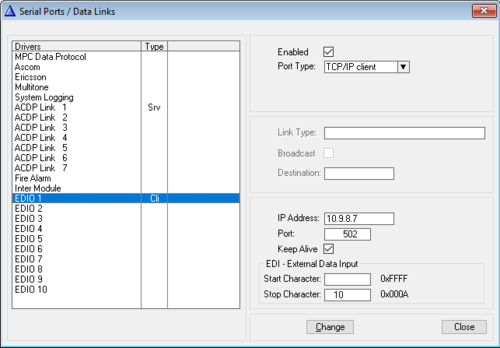 - In AlphaPro, Exchange & System > Serial Ports, select an available EDIO port, for instance EDIO 1