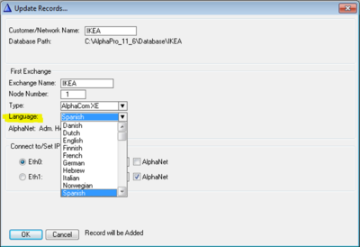 The language of the display texts is selected when creating the database in AlphaPro.