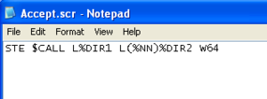 - Make a text file 'Accept.scr' containing the command: STE $CALL L%DIR1 L(%NN)%DIR2 W64