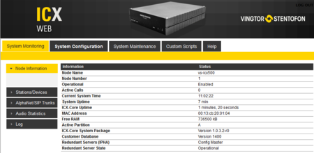 The ICX500 gateway runs an embedded web server. It allows the users to log in using a standard web browser such as Chrome or Firefox to operate and manage the ICX500 system. The web server provides functions for system monitoring, configuration, and software upgrade.