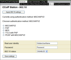 • The button "Apply 802.1X settings" sends the user to a page where the IP-station can be restarted in order to use the new settings. New 802.1X settings are not used before after restart. Note: This button does not save the settings.