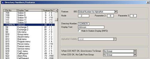 The directory number must be programmed in the AlphaCom directory table with feature 83 and Node = SIP Trunk node number (100 in this example). The “Parameter 2” field (in earlier AlphaPro version “Collect N more digits (SIP)”) must be left blank.
