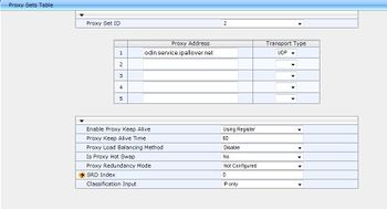 - Click the Proxy Set Table button. In the ‘Proxy Address’ field enter the IP address of the Mediant 600.