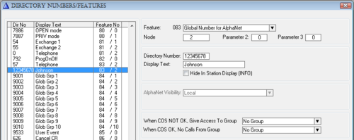 The directory number must be programmed in the AlphaCom directory table with feature 83 and Node = SIP Trunk node number (100 in this example). The “Parameter 2” field (in earlier AlphaPro version “Collect N more digits (SIP)”) must be left blank.