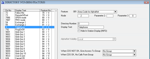 The directory number must be programmed in the AlphaCom directory table with feature 83 and Node = SIP Trunk node number (100 in this example). In the “Parameter 2” field (“Collect N more digits (SIP)” in earlier AlphaPro versions) you must enter the maximum number of digits in a phone number.