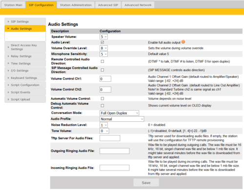 Volume Override Level: Select the Volume Override Level in the range 0 to 8 from the drop-down box. The default setting is 8. This setting determines the volume to be used in the station when receving audio and the Volume Override feature is activated, see Volume Override for more details.