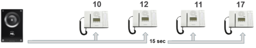 Example: When the call button is pressed, the call goes to station number 10. If not answered within 12 seconds, the call will be forwarded to station number 12. If not answered, the call will be routed to 11, and finally to station number 17.