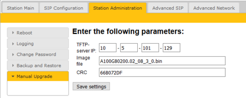 To upgrade the software from the web page of the IP Station:
