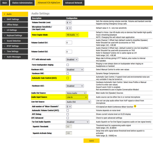 Make sure AGC is disabled and Voice Engine is set to HD-Audio: