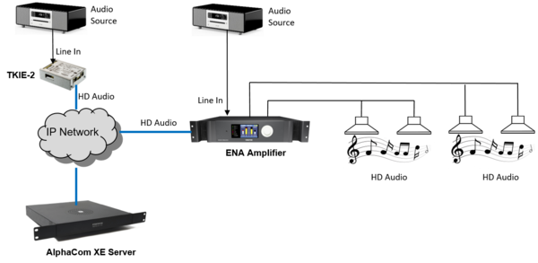 The Line Input channel of the ENA Amplifier (or the TKIE-2 kit) must register to a directory number in the ICX-AlphaCom server.
