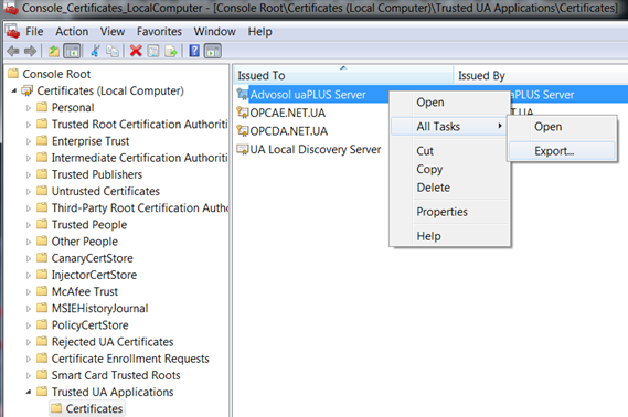 - (download) Export OPC UA certificate.PNG . . 569 × 378 . . 120 KB . . Maintenance script . . 11:54, 23 February 2018