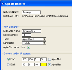 • Connect the PC to ethernet port 0 of the AlphaCom