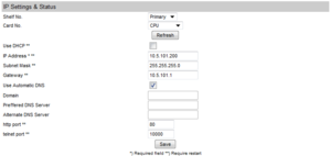 • Under IP Settings & Status select Shelf No. = Primary and Card No. = CPU