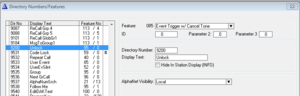 • In AlphaPro - Directory & Features, Insert a new event trigger directory number with feature number 85, e.g. 9200.