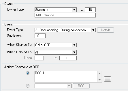 Create a "Door Opening" event with the IP Video Door Station as the event owner. Select Exchange & System -> Events, and Insert a new event with the following properties: