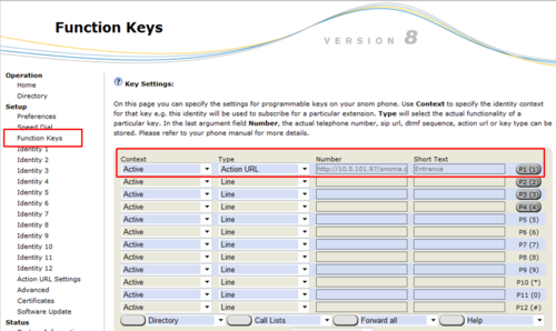 In the web interface of the phone, select Function Keys in the menu, and enter the following parameters: