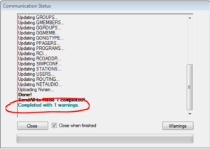 After transferring data to the AlphaCom using Send All, you see a warning message at the bottom of the status window, saying "Completed with xx warnings".